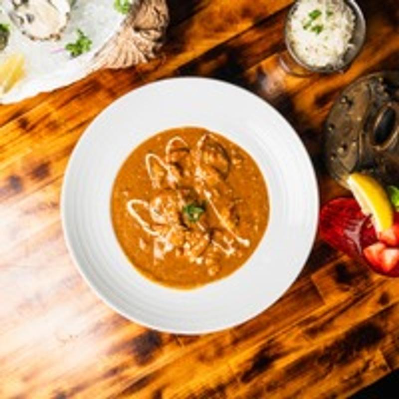 Crab meat, shrimp and lobster meat in tomato cream sauce. Served with rice