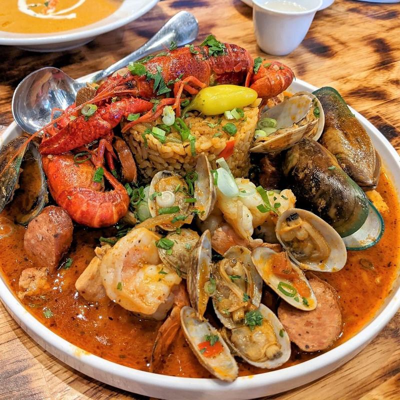 Chicken, shrimp, mussels, clams, crawfish and Andouille sausage. Served with Creole style rice