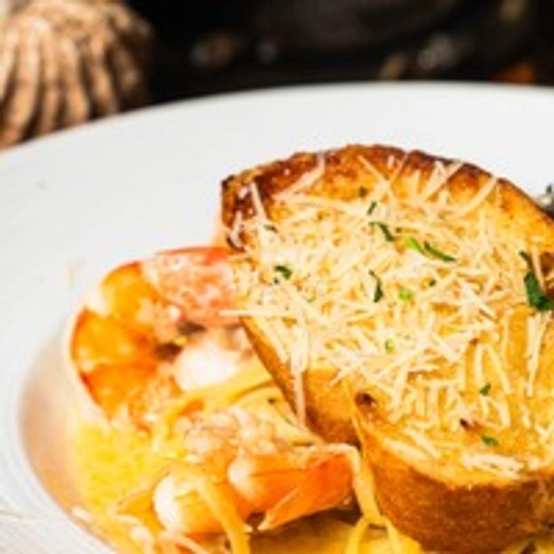Jumbo prawn cooked in lemon garlic butter, white wine, herbs, and garlic bread | Add Pasta +$5.00