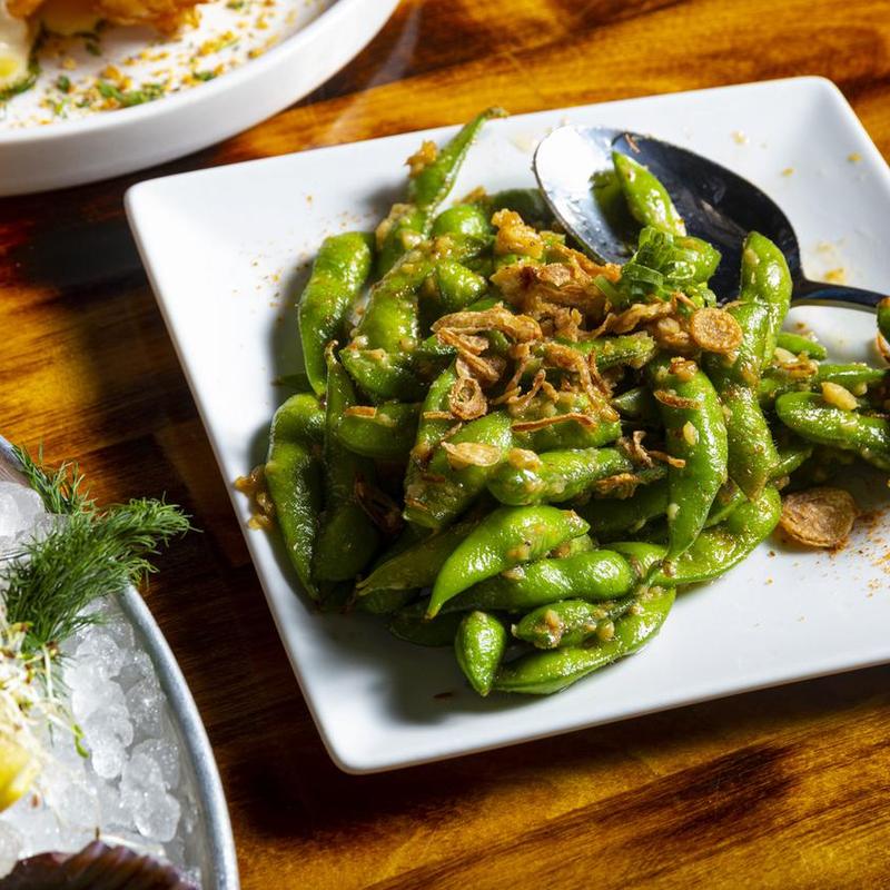Large Octopus tentacle with Garlic rice, green crisp truffle and Thai chili sauce